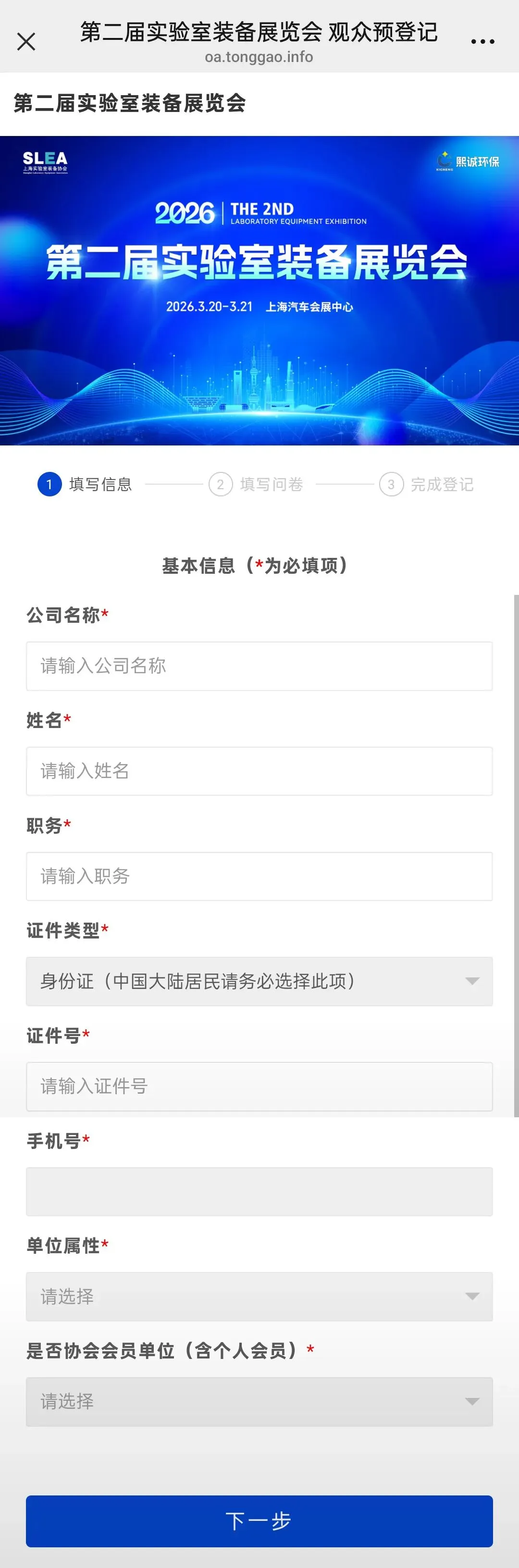 第二届实验室装备展览会报名系统已正式上线!参观免费开放,实行预约登记制,大家快来了解下报名流程吧!