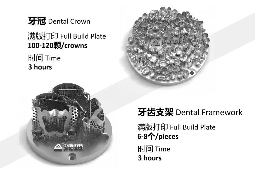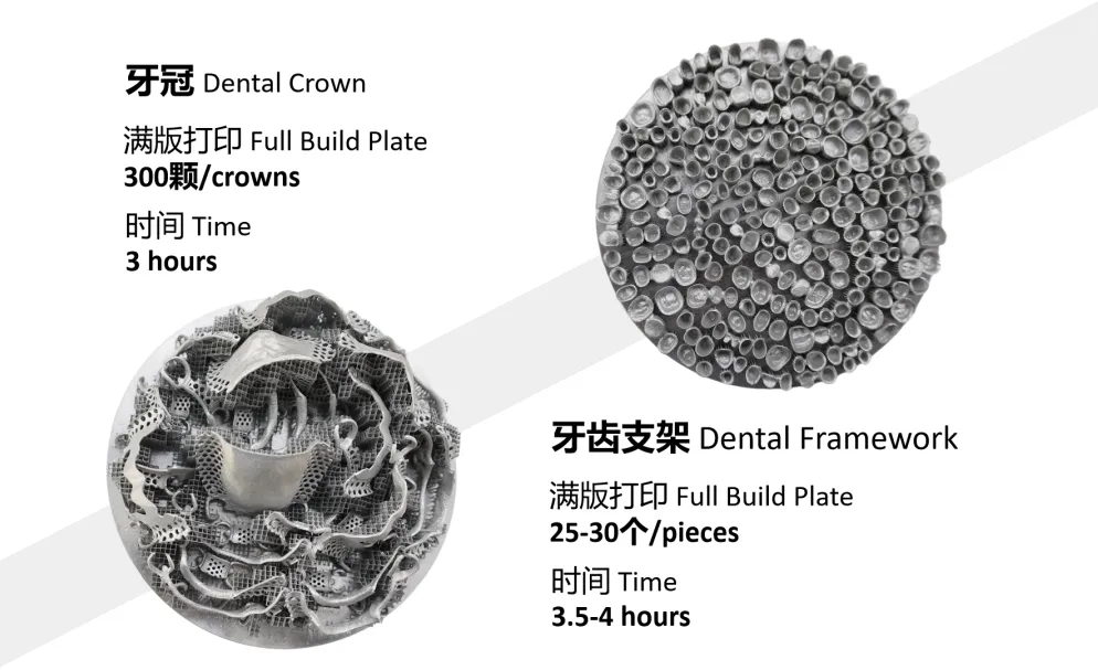 High efficiency & quality, capable of printing 100-120 crowns/ 6-8 frameworks in 3h with ≥99.9% density