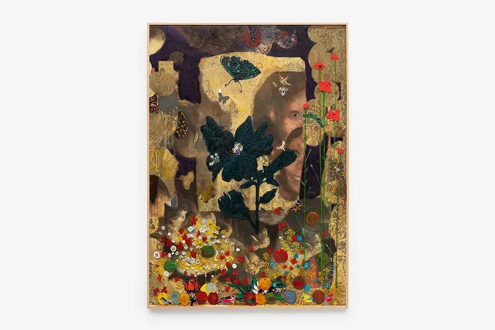 Cotton, digital print on paper, oil, pencil, acrylic beads, museum glass, silk |棉,数码印刷纸,油,铅笔,丙烯酸珠,博物馆玻璃,丝绸