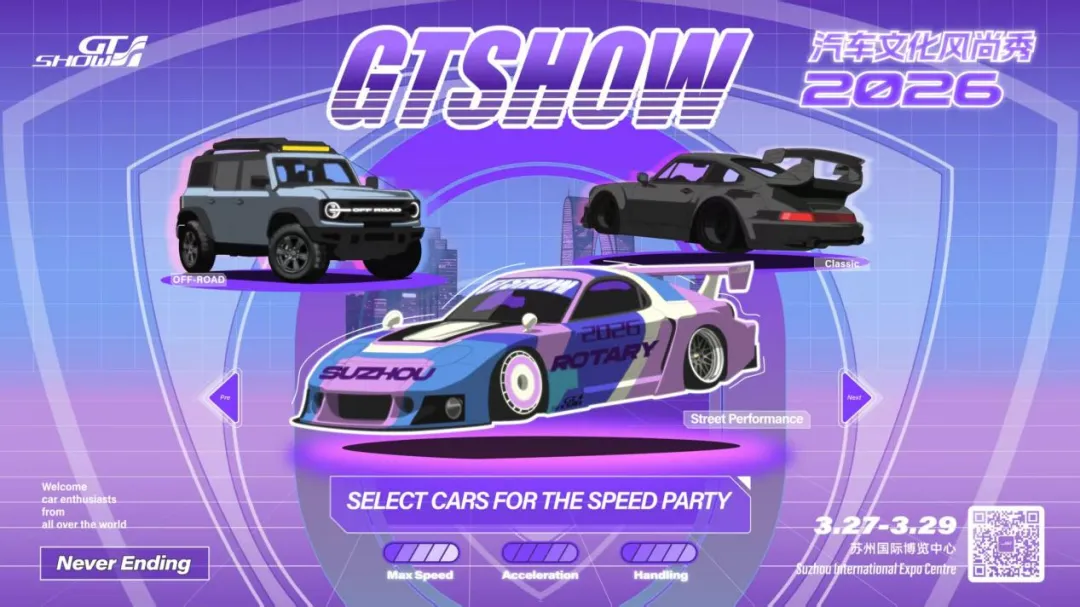 GT Show汽车文化及产业博览会(简称“GT Show”)是苏州本土培育并发展起来的专业展会,已连续成功举办八届。目前,其规模位列中国改装车领域第一、全球第四。2026 GT Show将以“文旅带动、场景推动、活动拉动、产业联动”为核心,打造集展览论坛、产业对接与场景体验于一体的国际汽车文化平台。展会深度聚焦改装车、性能车等汽车文化,通过精心策划主题活动、产业高峰论坛及文商旅融合新场景,链接全球资源,助力苏州构建现代化汽车产业体系。