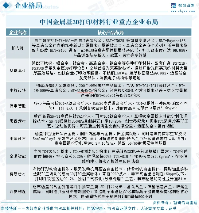 相关报告:智研咨询发布的《中国金属基3D打印材料行业市场竞争现状及发展趋向研判报告》
