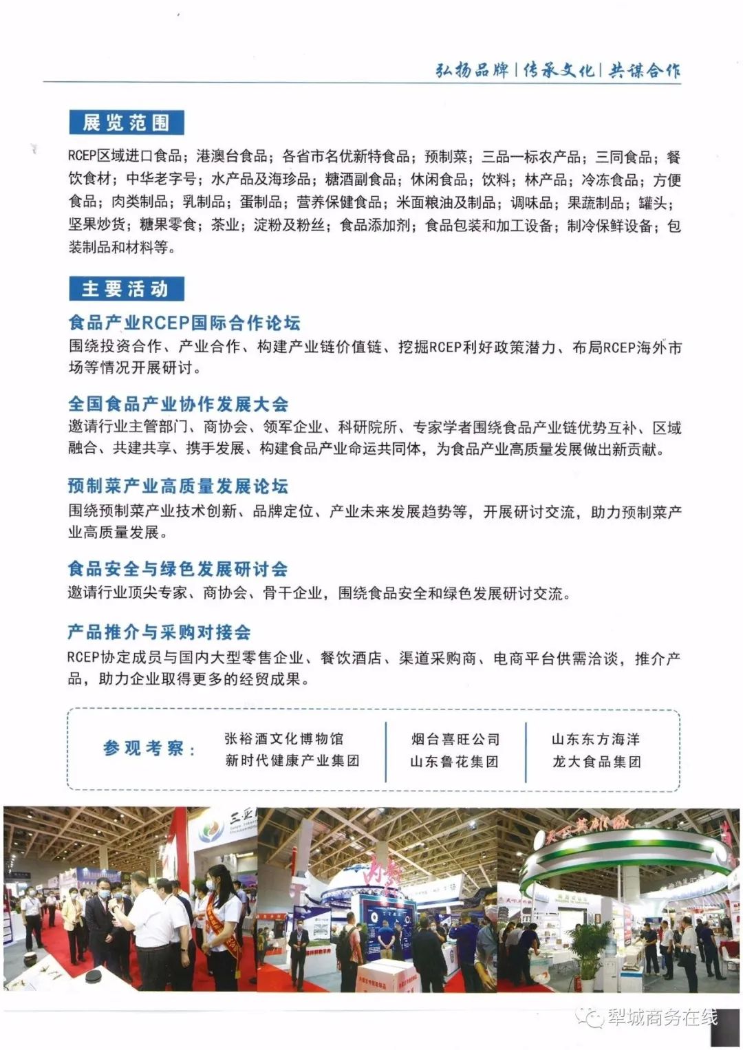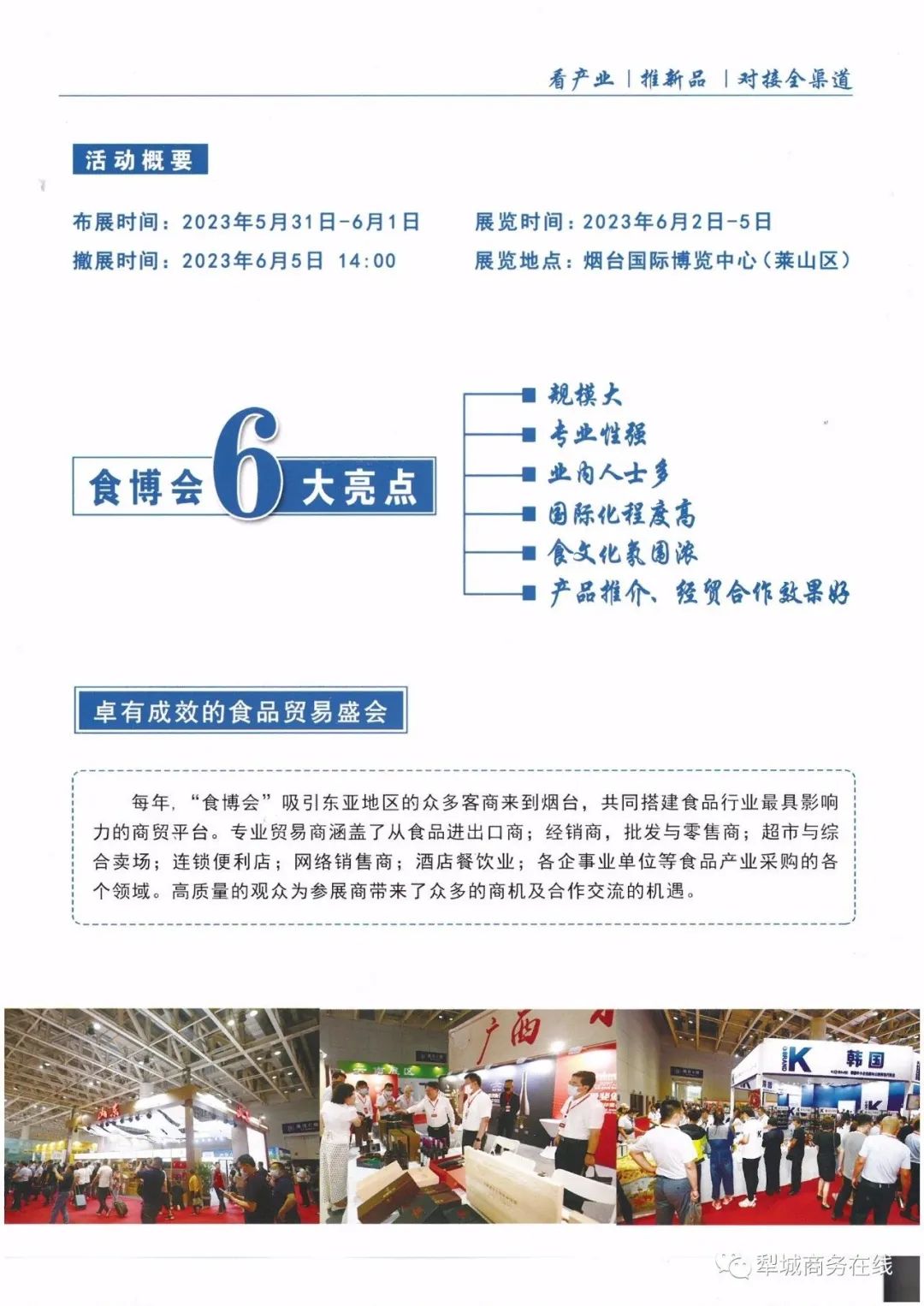 为促进山东省食品行业经贸交流与合作,助力企业开拓国内外市场,推动商贸流通繁荣,现组织我县优质食品生产、加工、销售企业前来参会参展。