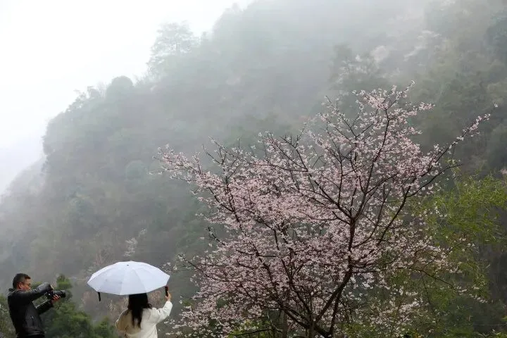 一方面,举办地八亩丘是野樱花的核心观赏区,700米的海拔让这里的春日常被云海环绕,推窗见樱、抬首望云,是独属于这场山野招商会的限定风景;