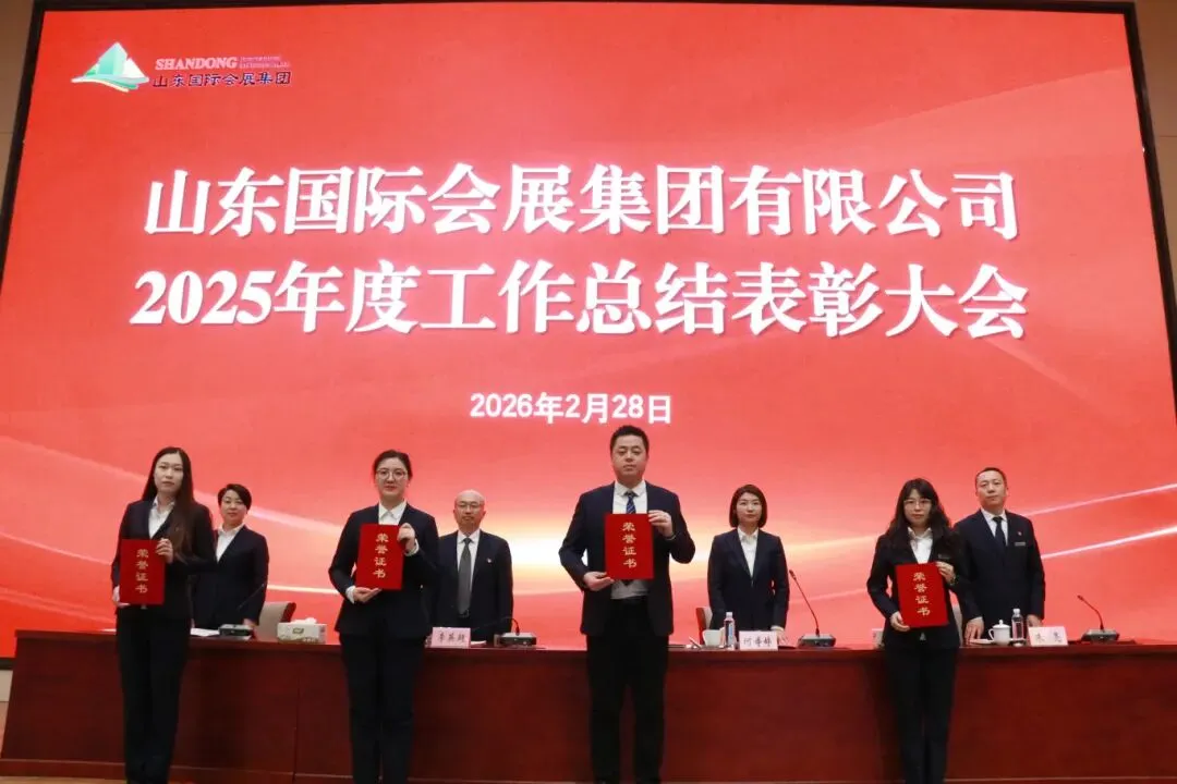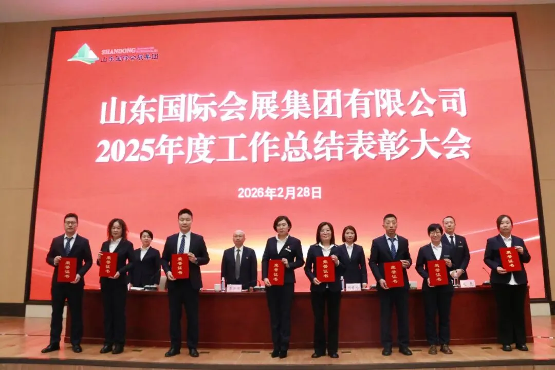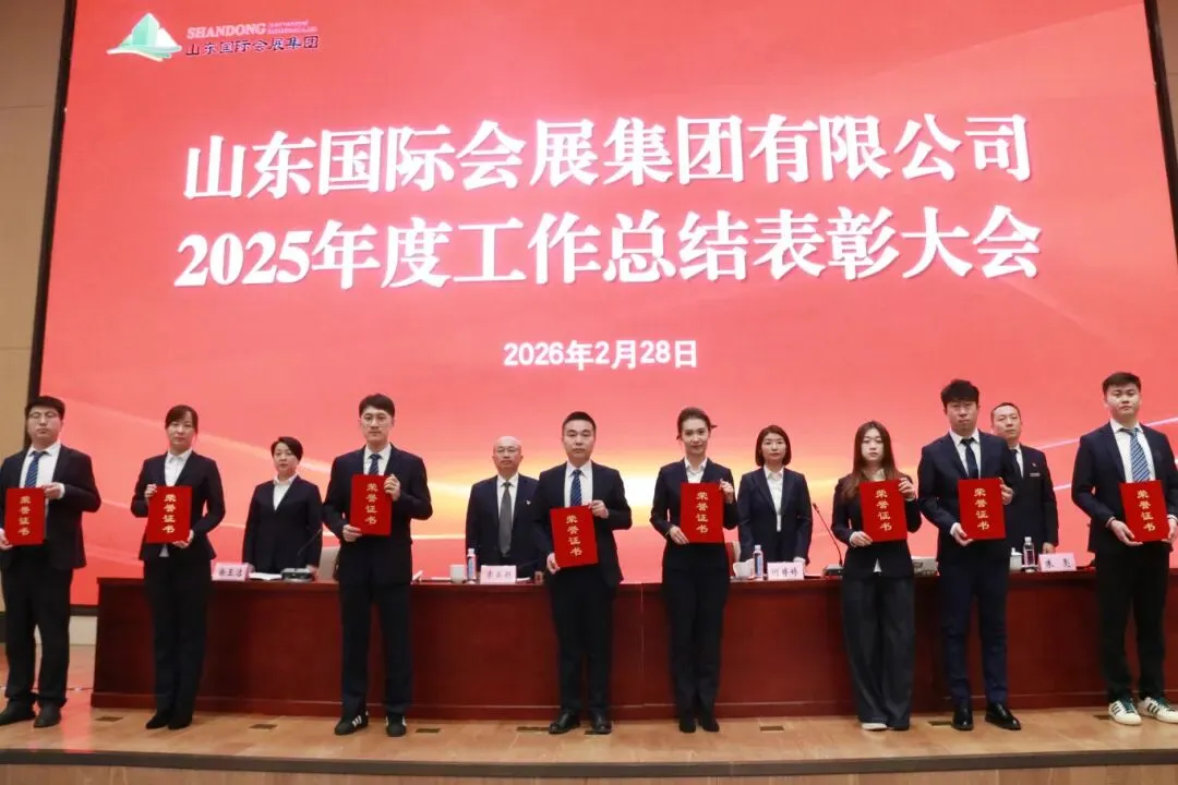 2月28日,山东国际会展集团召开2025年度工作总结表彰大会,全面回顾总结2025年工作成效,分析公司形势与发展机遇,部署2026年重点任务,表彰先进集体和个人,激励集团全体员工以先进为楷模,始终保持奋发图强、勇立潮头的进取精神,争分夺秒、团结协作,全力以赴完成2026年各项目标任务。
