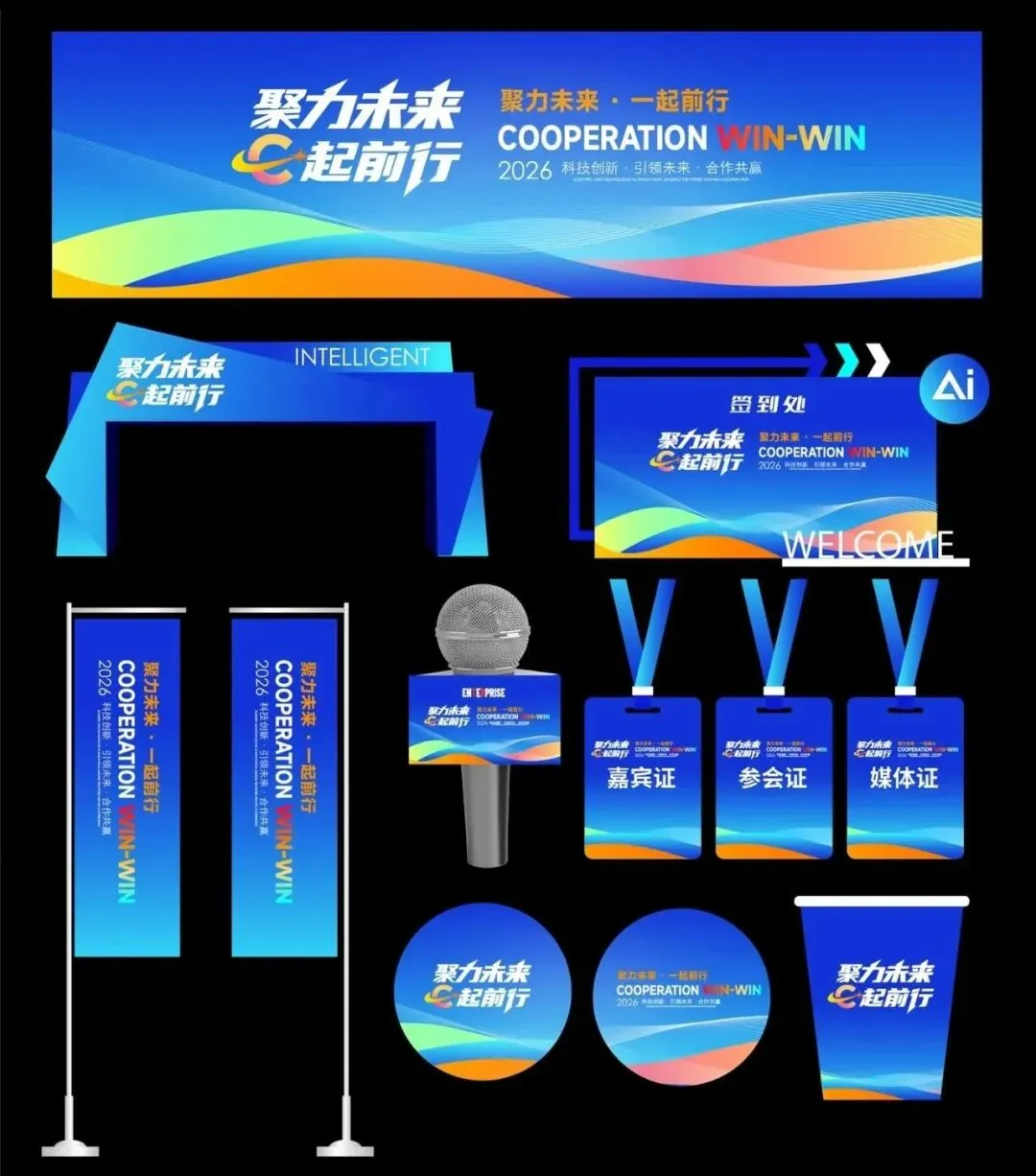 当科技感与视觉美学碰撞,蓝色科技风主视觉便成了品牌传递前沿气质的绝佳载体。这套物料设计以深邃蓝为主调,融合线条、光效与几何元素,既保留了科技的冷峻质感,又通过层次分明的视觉语言,让未来感变得触手可及。从主视觉海报到延展物料,每一处细节都在强化 “科技赋能、创新引领” 的品牌内核,让受众在视觉冲击中,快速感知品牌的前沿定位。设计运用舒展的线条,不仅消解了大尺寸画面的压抑感,更让科技风摆脱了冰冷刻板,呈现出兼具前沿感与亲和力的视觉张力,完美契合各类高端峰会、合作论坛的场景需求。薪诚文化深耕会展会务主视觉设计、文化墙打造、图文广告制作等领域,可提供从核心主视觉到全套衍生物料的一站式服务,助力您的活动绽放光彩。如有合作需求,欢迎联系我们。