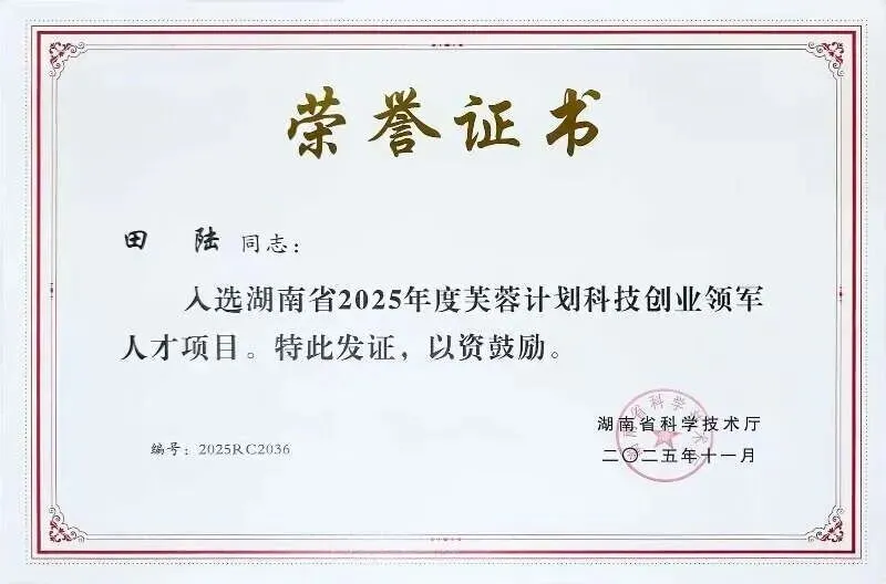 近日,镭目公司迎来双重喜讯:联谊会理事、董事长田陆成功入选湖南省2025年度“芙蓉计划”科技创业领军人才,系全衡阳市唯一;2026年2月26日,长沙经开区高质量发展大会上,镭目公司获评2025年度“高质量研发机构”。两项荣誉既是对田陆董事长创新创业能力的认可,也是对镭目研发实力的肯定,彰显了其国家专精特新“小巨人”企业的实力。“芙蓉计划”是湖南省人才强省战略核心举措,重点遴选核心技术攻关、科研成果转化突出的创业领军人才。田陆董事长此次入选,既是其个人里程碑,也是衡阳市科技人才培育成果,彰显了他在钢铁智能化及核工业领域的卓越实力。