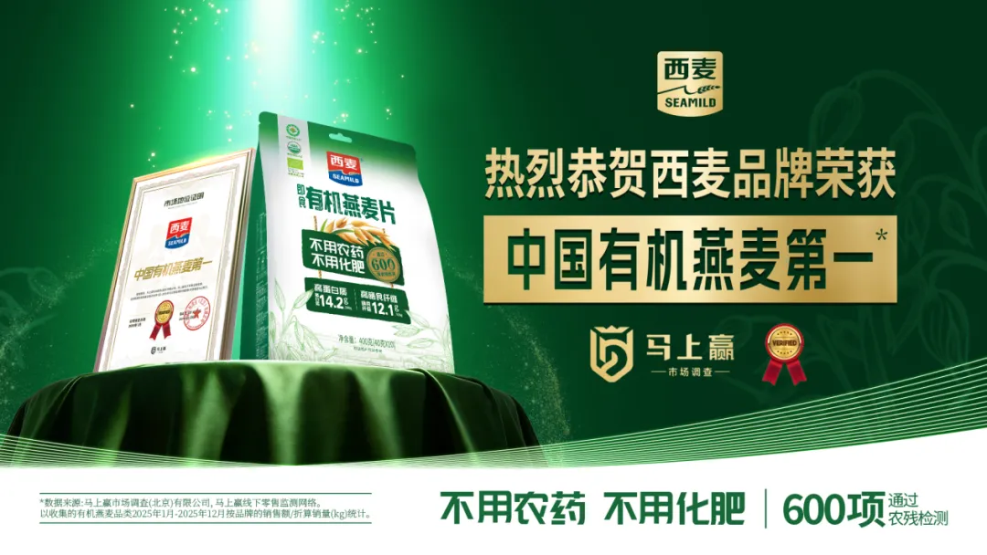 2026 年 2 月 10 日,国内权威市场调研机构马上赢市场调查(北京)有限公司发布市场地位认证报告,正式授予西麦“中国有机燕麦第一”称号,西麦以有机赛道的绝对领军优势,为大众康养食养提供高品质谷物选择,彰显康养食品领域的标杆实力。