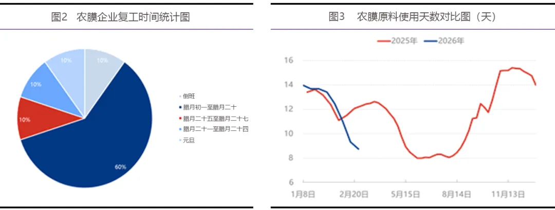七成农膜企业正月十六后复工,主要为规避节后成本上涨风险。棚膜处于淡季,中小企业因订单不足开工滞后,中大型企业复工未达满负荷;地膜处于旺季,部分规模企业假期倒班保交付,但节后人员不足,开工率未恢复至节前水平。