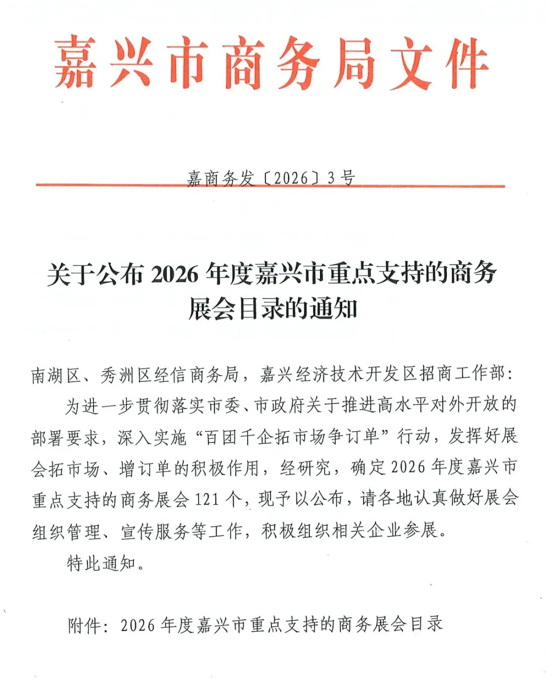 近日,嘉兴市商务局正式发布《关于公布 2026 年度嘉兴市重点支持的商务展会目录的通知》(嘉商务发〔2026〕3 号),环球资源香港电子展(4 月 / 10 月)、环球资源沙特阿拉伯展 成功入围!这意味着嘉兴市本级(南湖区、秀洲区、经开区)的外贸企业,参展这两大核心展会可享政府重点补贴支持,拓客出海成本再降!