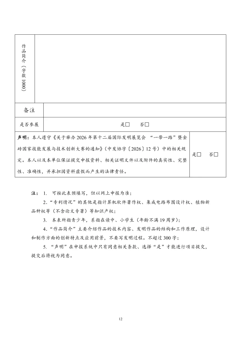 关于举办2026年第十二届国际发明展览会“一带一路”暨金砖国家技能发展与技术创新大赛的通知