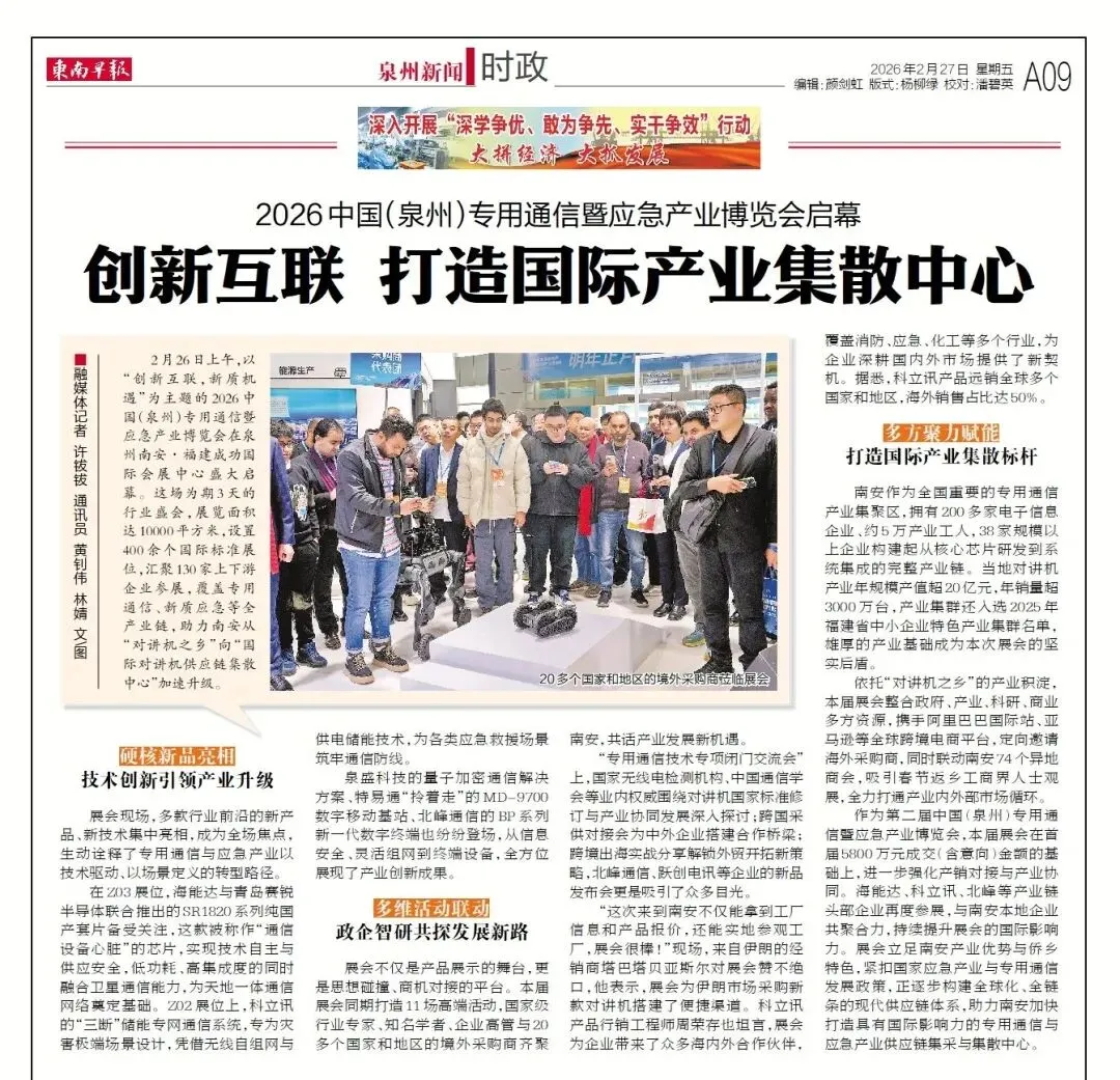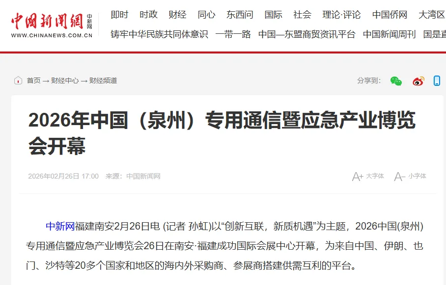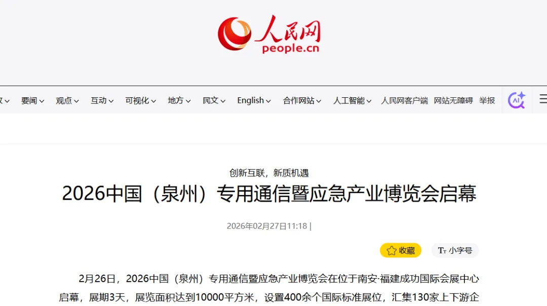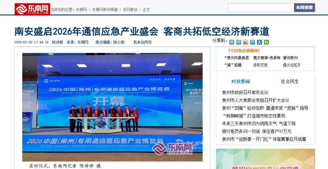 2026年2月26日-2月28日,为期三天的2026中国(泉州)专用通信暨应急产业博览会在泉州南安· 福建成功国际会展中心圆满落幕。