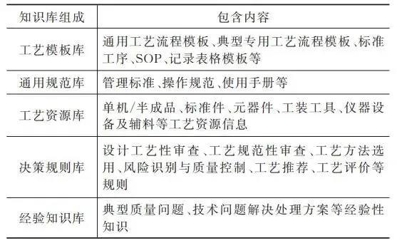 总装工艺设计是卫星总装生产组织和生产线运行的前提。卫星总装工艺具有知识密集的特点,据统计,同平台卫星总装工艺相似度达80%~85%,不同平台卫星总装工艺相似度达 50%。根据上述特点,本文采用知识驱动的总装工艺快速设计方法,设计流程如图 3 所示,基于总装工艺知识库(其组成见表 2)和推理算法,开发总装工艺快速设计系统,实现单机装星、热控集成等通用工艺的自动生成以及其他专用工艺的快速生成,具体步骤如下。