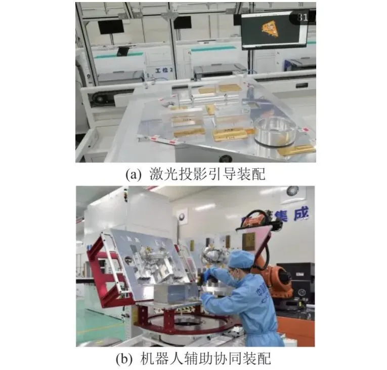 4)装配精度在线测量:在精度测量环节,采用高精度在线测量系统,通过总装工艺数字样机获取测量目标的坐标,自动进行测量路径规划并生成精度测量程序;采用基于模拟同轴光的视觉引导自动准直方法,引导光电自准直仪初步找像,进行目标指向精度自动测量与解算,实现整星一次安装完成全部目标指向精度的自动测试,单目标精度测量时间从 20~30 min 缩短至 5 min。