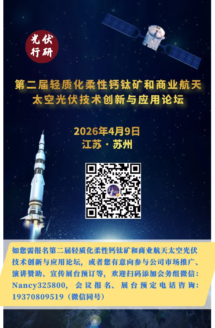 第二届轻质化柔性钙钛矿和商业航天太空光伏技术创新与应用论坛将于2026年4月9日在江苏 · 苏州举办,此次大会将重点聚焦钙钛矿航天级稳定性改性、柔性太阳翼集成设计、太空光伏与太空算力能源匹配、钙钛矿太空应用验证、商业航天光伏供应链构建等核心议题,如您在相关领域有所建树,欢迎您来论坛交流分享!