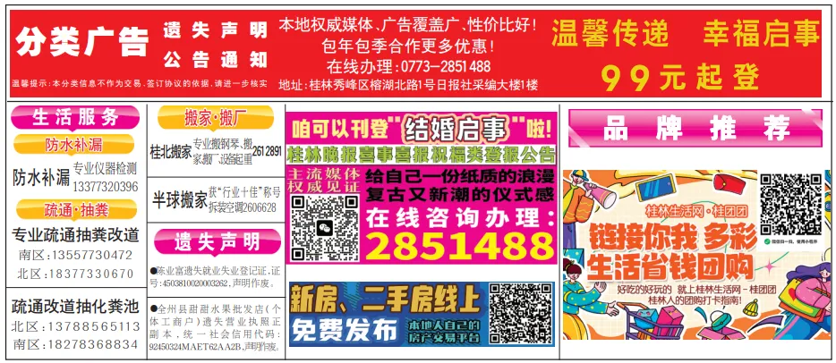 官方足不出户线上办理《桂林晚报》《桂林生活网》公告、喜讯、遗失声明啦! 24小时微信咨询:269227921