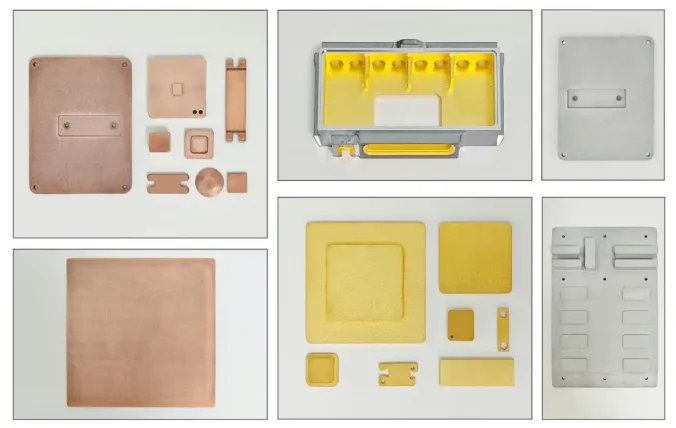 公司产品涵盖金刚石/铜、金刚石/铝超高导热材料、石墨/铝、碳纤维/铝、碳纤维/镁、高导热低膨胀碳化硅/铝等新型材料及其构件,成功解决先进半导体、新能源、消费电子对轻质、高导热、高强、高刚度等性能的需求,为大功率芯片封装、消费电子、航空航天、新能源汽车等领域提供重要的材料和构件支持。