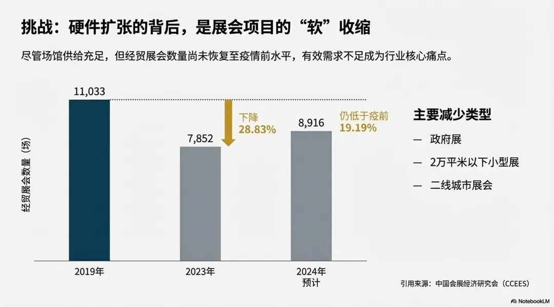 综合历年我国会展业的数据,在展会的数量和规模而言,中国会展业稳居全球前列。然而,一个深层次的结构性问题始终萦绕在业界心头——中国是会展大国,但还不是会展强国。