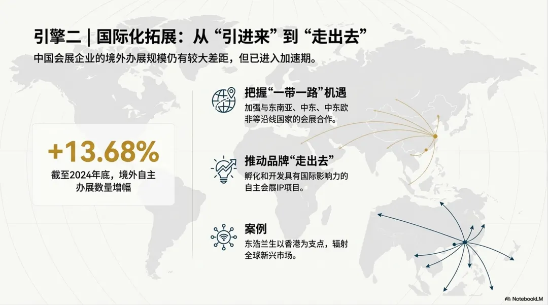 - 青岛国信会展酒店发展集团将世园会场馆转型为会展综合体,结合酒店、文旅资源,推动“会展+旅游”融合发展;武汉国际会展集团将多个大型自办展会集中管理,统一招商与宣传,推动“会展+制造业”模式。