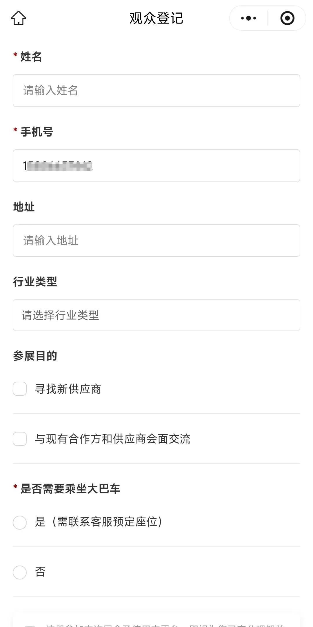 ps: 输入手机号并验证,进入报名页面。并按照要求填写。