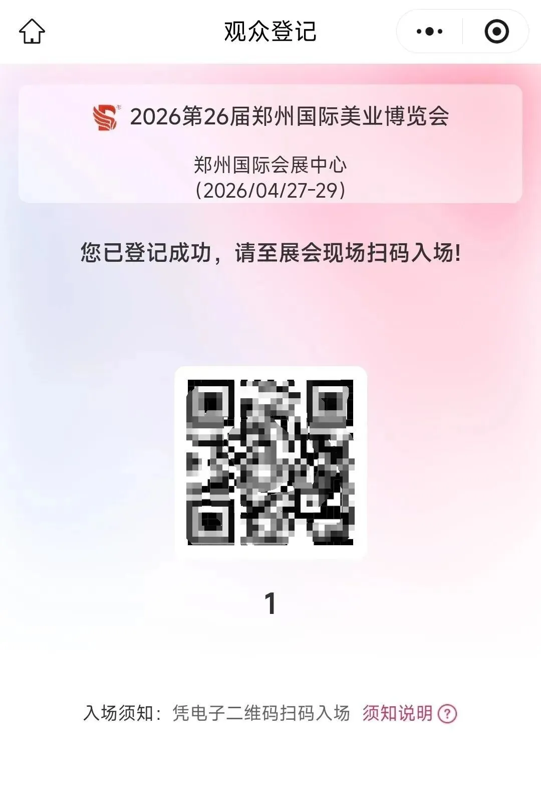 ps: 点击提交后,生成个人二维码,截图保存,现场出示即可换取参观证。