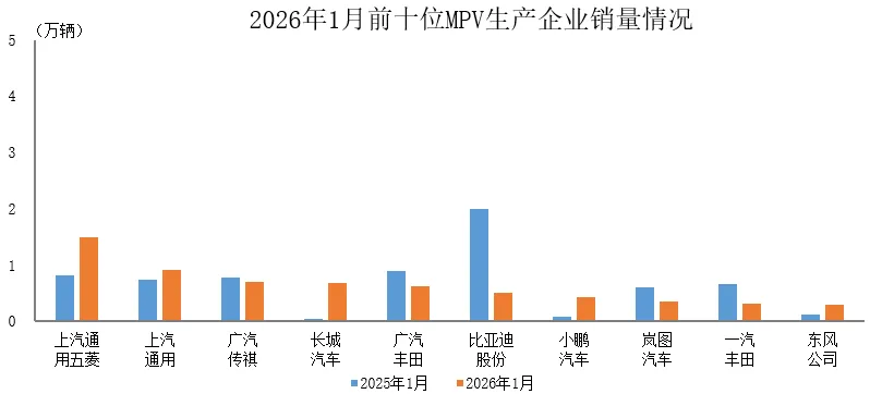 据中国汽车工业协会统计分析,2026年1月,销量排名前十位的MPV生产企业共销售6.3万辆,占MPV销售总量的85.4%。
