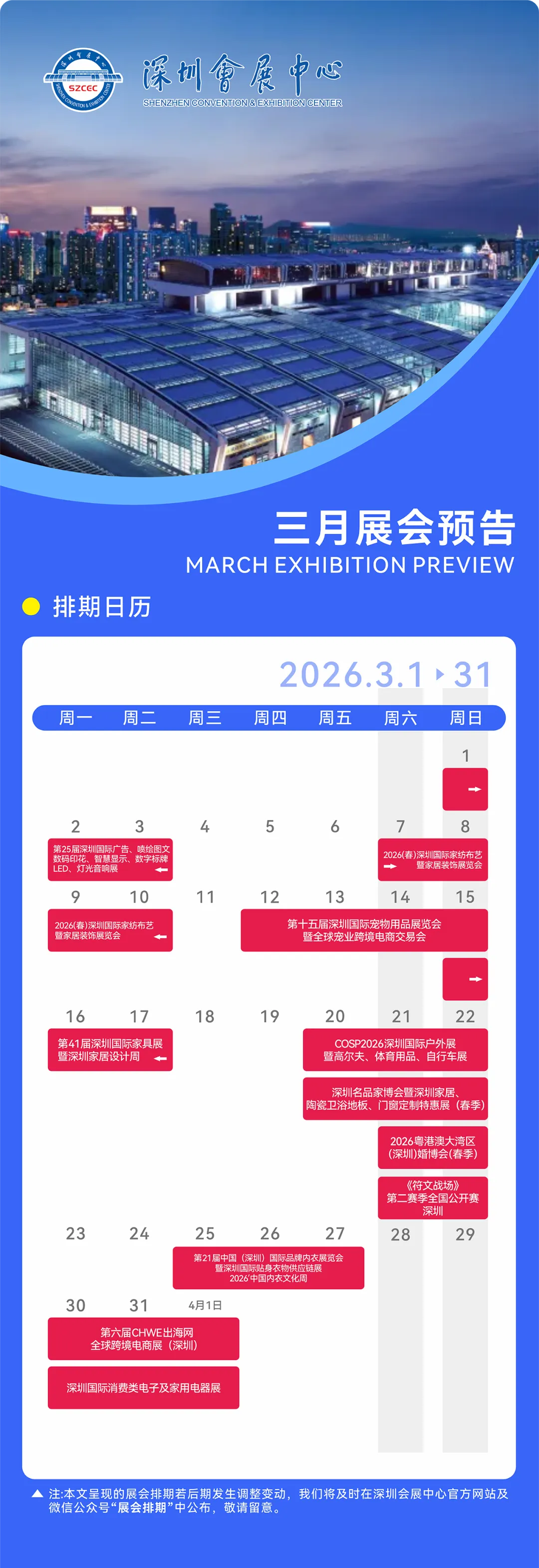 特别声明:上述活动为主办方组委会发布,与深圳会展中心不存在任何关联。