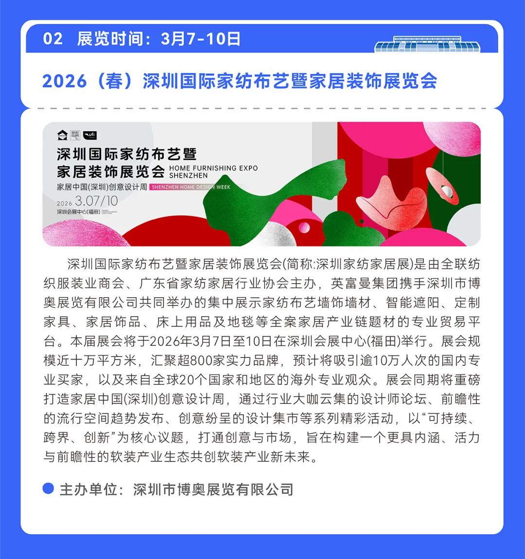 免责声明:本宣传文案所涉及数据、图片、视频等资料部分来源于网络,转载目的在于传递更多信息,内容仅供参考,准确内容以正式批文或签约文件为准。如涉及侵权,请联系删除。在法律许可的范围内,深圳会展中心享有最终解释权。