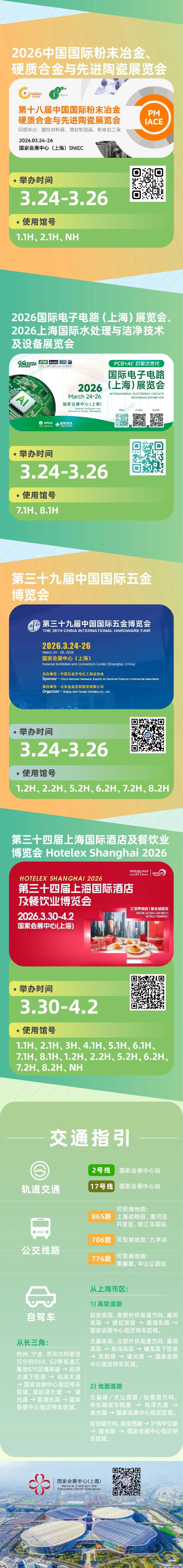 春潮涌动,十多场重磅大展齐聚 “四叶草”,覆盖食材、广告印刷、纺织工业、食品添加剂、3D 打印、农用化学品、机床、冶金、电子电路、五金及酒店餐饮等众多领域。从硬核智造到消费前沿,国家会展中心以行业平台之力,串联产业上下游,汇聚全球创新动能,诚邀您共赴三月繁盛之约,解锁高质量发展新机遇。