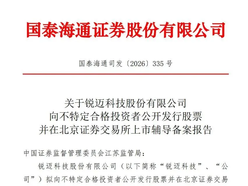 2月24日,锐迈科技在江苏证监局办理辅导备案登记,正式冲刺北交所上市。