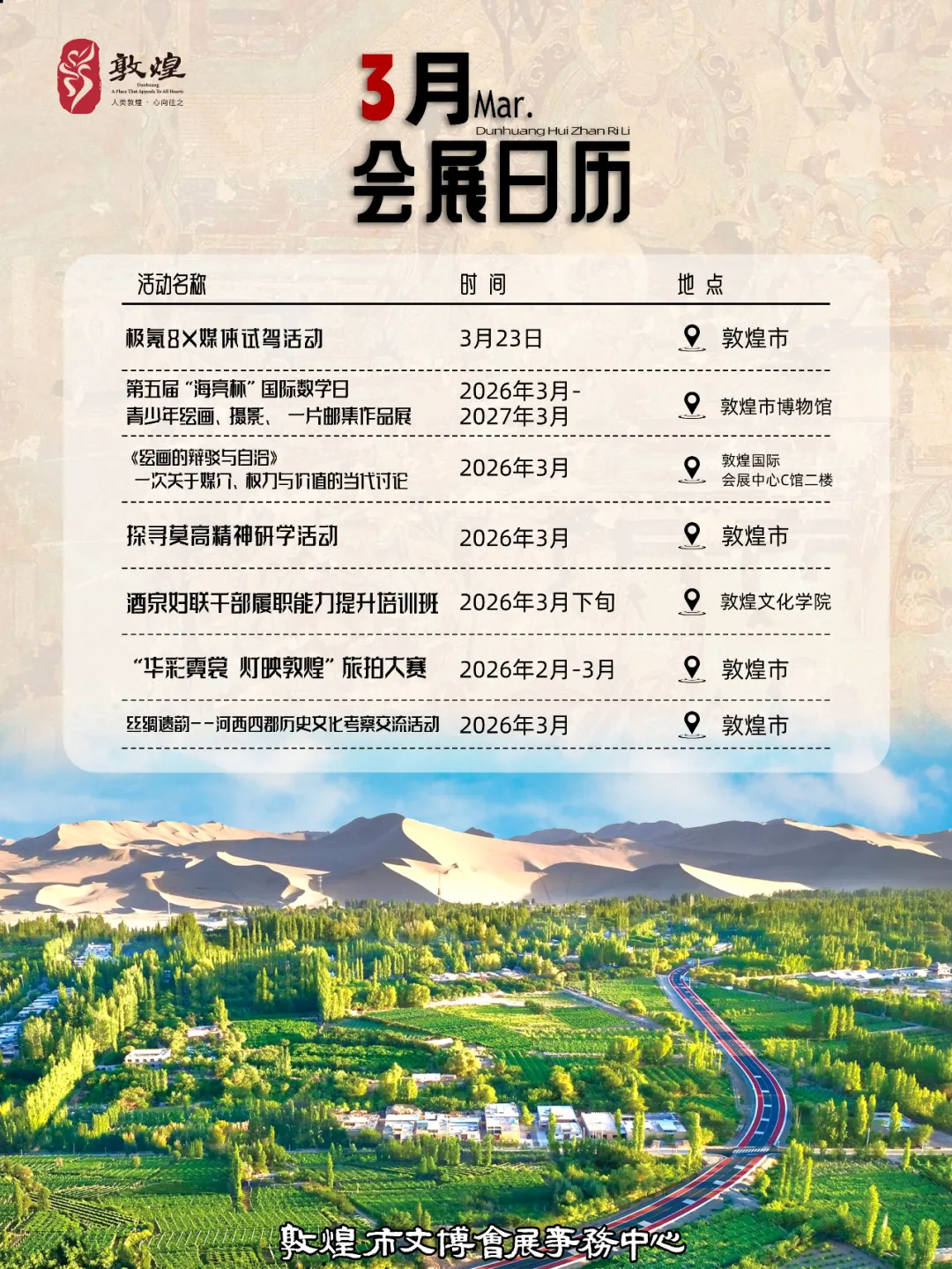 【2026敦煌会展日历】:敦煌三月份会展活动,全在这!