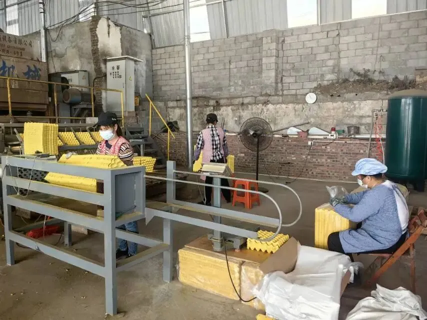 在吉奥包装纸制品有限公司,环保型纸质鸡蛋托生产线正高效运转。废旧纸张经碎浆、成型、烘干等工序,变成纹路清晰的蛋托,通过传送带整齐输出,工人快速分拣、堆叠,逐步恢复日产蛋托35万片的产量,产品源源不断发往两广及周边地区。