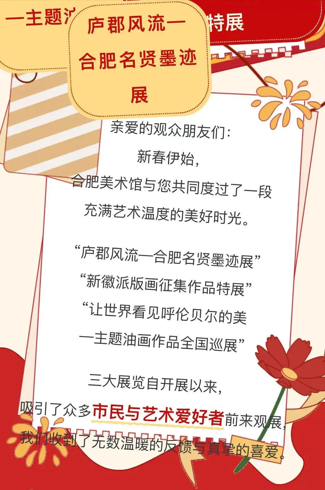 今天上午,接获合肥美术馆馆方通知,《庐郡风流——合肥名贤墨迹展》和另外两个展览,由于观众反馈良好,决定展览延期(暂定延期至3月15日)。