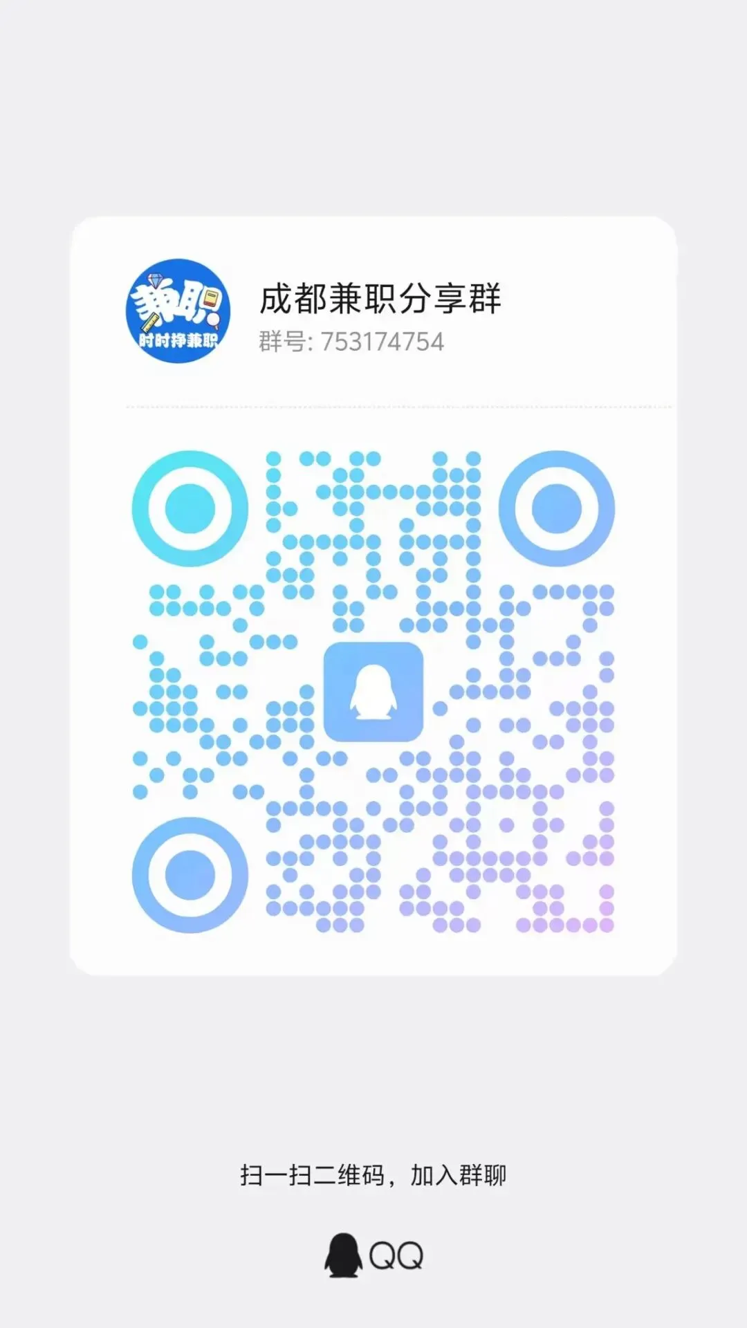 成都兼职招聘线下客服工作人员薪资日结每天工作2-4小时早10-晚7(工作时间段任意安排2-4小时)薪资100-120一个小时薪资现场结算(新手也可以仅限人在成都地区)联系方式扫码添加微信