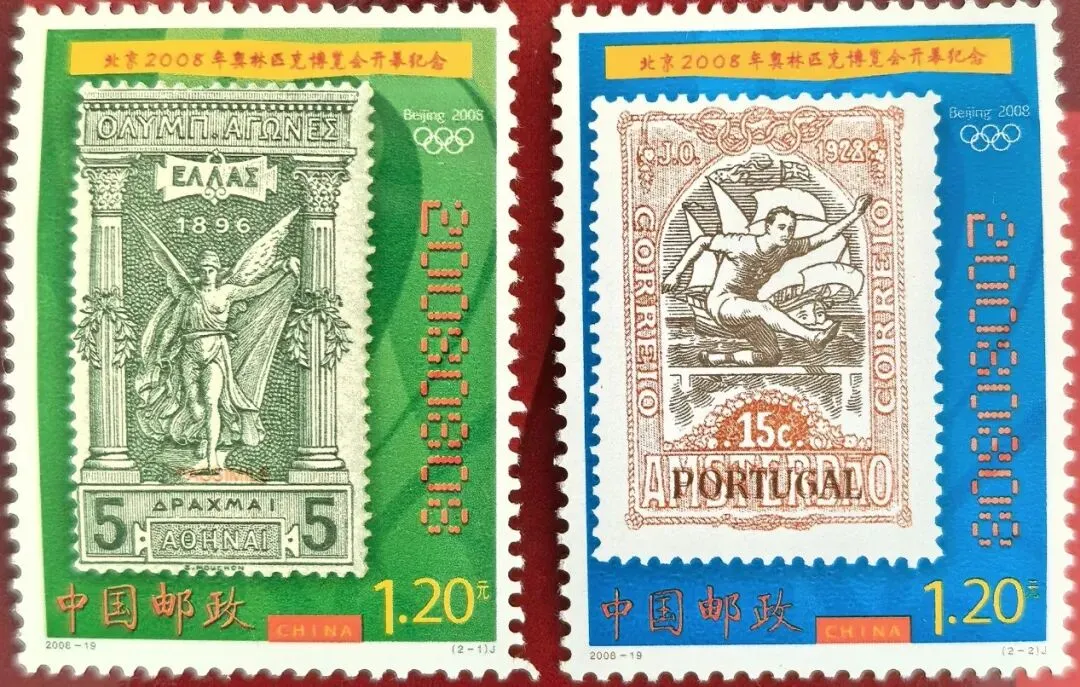 邮票采用历史文物复刻手法,通过影写版印刷技术重现了19世纪末至20世纪初奥运会邮票的设计细节。