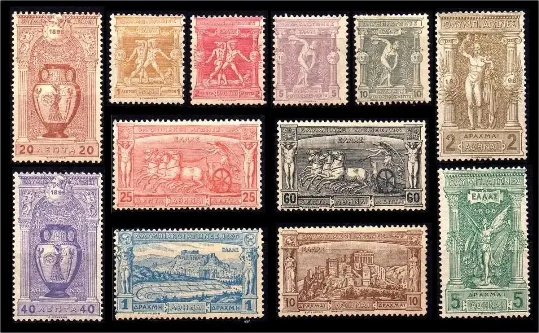 这套邮票于1896年4月6日希腊奥运会开幕当天发行。