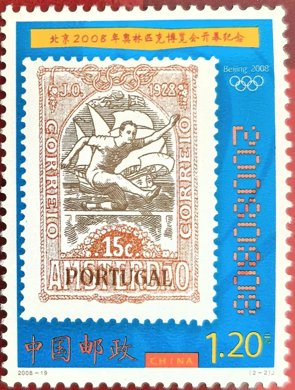 这枚邮票主图是1928年葡萄牙发行的奥运会邮票中的一枚。
