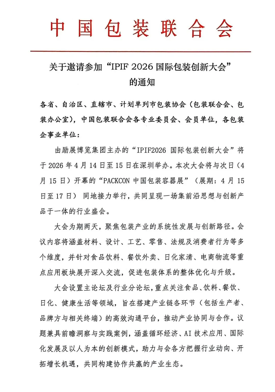 展会预告 | 关于邀请参加“IPIF 2026国际包装创新大会”的通知