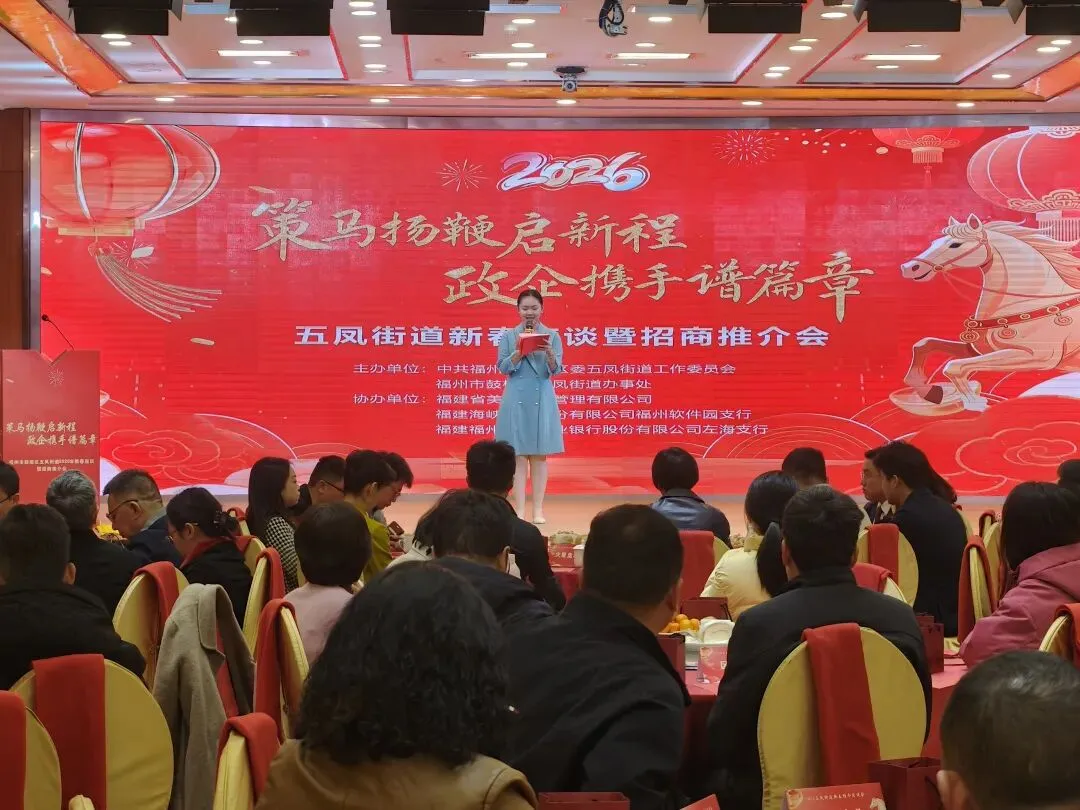 金马扬蹄开新运,策马争先启新程。2月28日,鼓楼区五凤街道2026年新春团拜会暨招商推介会隆重举行,辖区重点企业、产业平台、侨企、台企、高层次人才、金融机构代表齐聚一堂,共叙情谊、共商发展、共话未来。