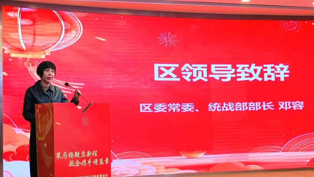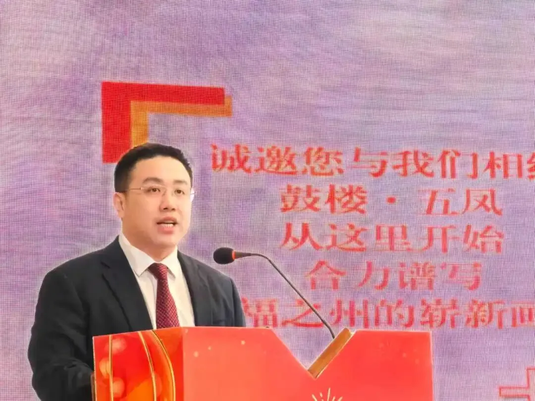 区委常委、统战部部长邓容在会上致辞,向企业家致以新春问候和衷心感谢。她指出,过去一年全区GDP总量达3368.43亿元,稳居全省城区第一,鼓楼区连续五年跻身中国楼宇经济发展指数标杆城区30强。五凤街道作为鼓楼“西拓”战略核心承载区,依托福州软件园产业基础、海洋经济科创高地发展势能,聚焦低空经济、人工智能等前沿赛道精准发力,推动左海西湖“两湖”商圈、环省体商圈提质升级。鼓楼有信心与大家共享“首善之区”的发展红利;有决心为大家营造“奋勇争先”的一流环境;有诚心与大家共绘“兴业蓝图”的美好未来。
