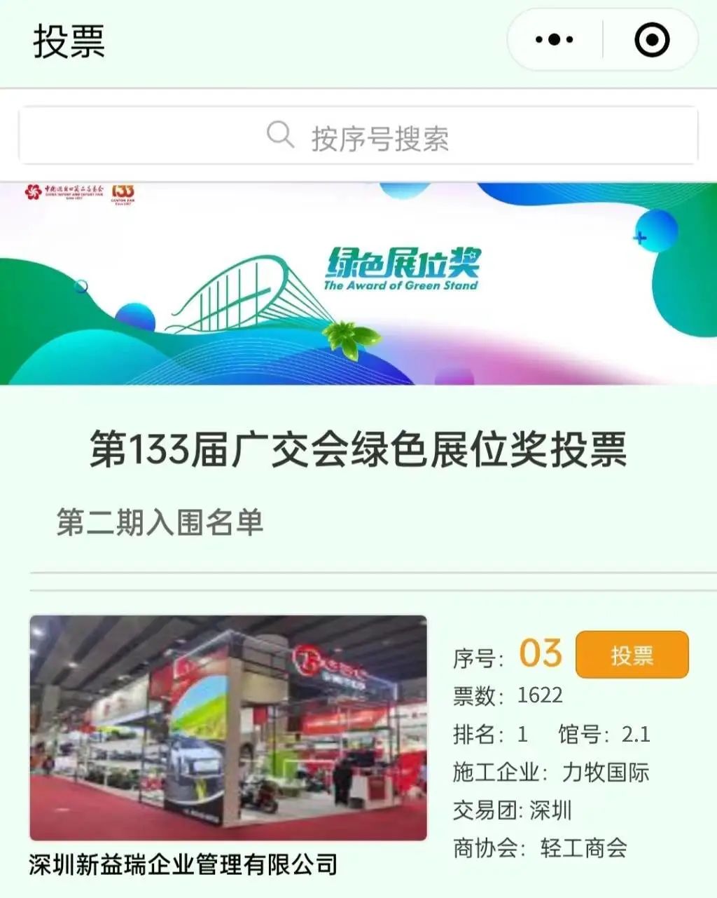 第133届广交会第二期绿色展位奖人气奖投票