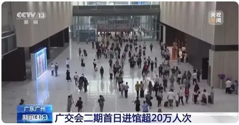 为期5天的第133届广交会第二期于今日圆满收官!据统计,第二期展会首日进馆超20万人次。