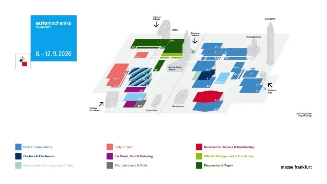 Automechanika Frankfurt 2026将于2026年9月8-12日在德国法兰克福展览中心隆重举办。