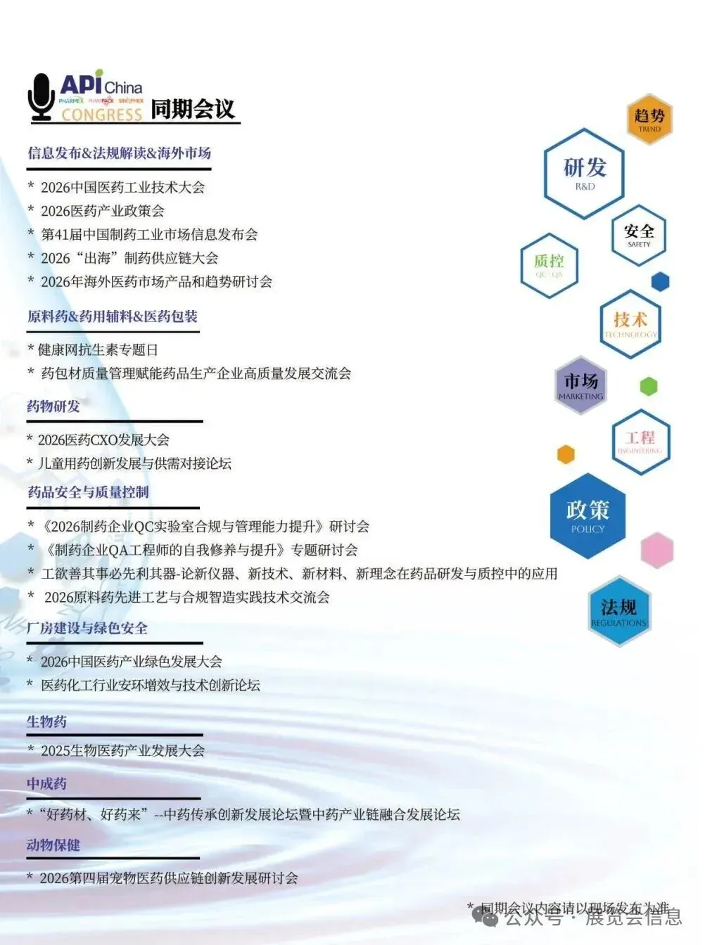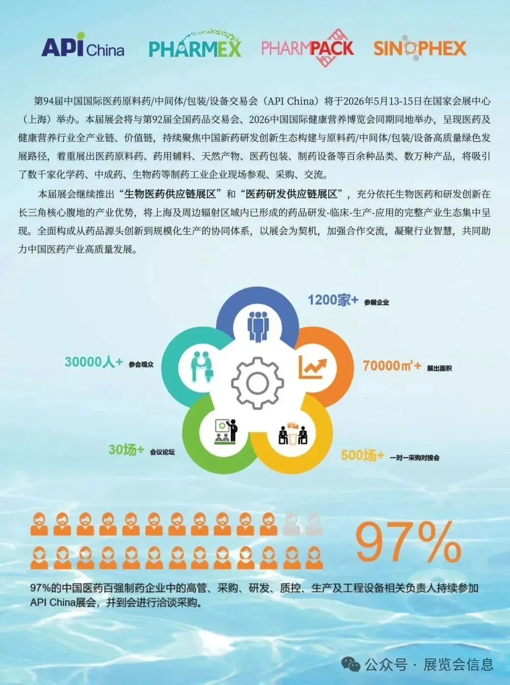 第94届中国国际医药原料药/中间体/包装/设备交易会(API China)将于2026年5月13-15日在国家会展中心(上海)举办。本届展会将与第92届全国药品交易会、2026中国国际健康营养博览会同期同地举办,呈现医药及健康营养行业全产业链、价值链,持续聚焦中国新药研发创新生态构建与原料药/中间体/包装/设备高质量绿色发展路径,着重展出医药原料药、药用辅料、天然产物、医药包装、制药设备等百余种品类、数万种产品,将吸引了数千家化学药、中成药、生物药等制药工业企业现场参观、采购、交流。