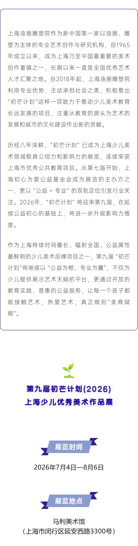 6. 2026年7月4日:第九届“初芒计划(2026)——上海少儿优秀美术作品展”开幕活动暨颁奖典礼