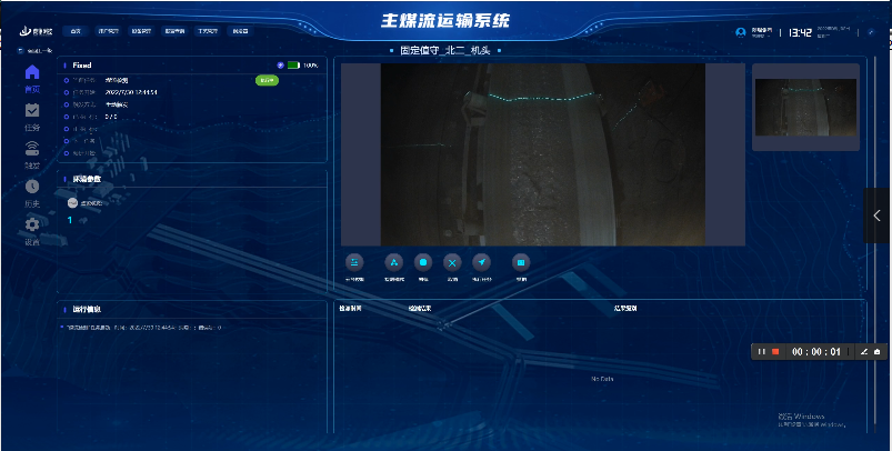 固定值守机器人采用高动态拍摄和实时处理技术,能实现在井下恶劣复杂环境中,实时监测、智能识别井下大块矸石、钢筋等威胁皮带安全的异物;视频数据的自动检测和分析、错误诊断、报警数据的自动存储和上传,可对输送机进行持续检测,降低了由于正常煤流对视觉判断的影响。