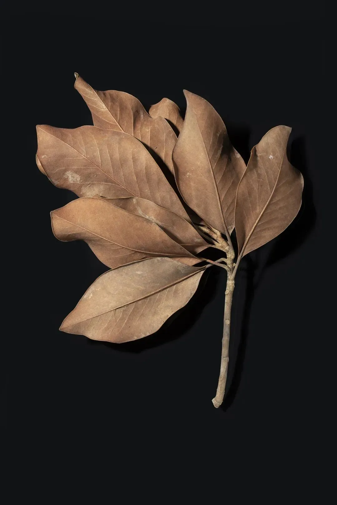 用光使用了柔和的侧光或伦勃朗光,精准勾勒出干枯表皮的纹理与凹陷处的阴影,让粗糙的质感、细小的裂纹都清晰可见,赋予了这些静态标本强烈的立体感。