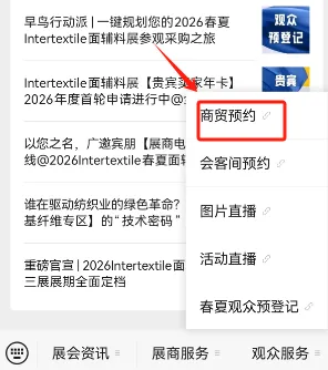*可进入微信订阅号、服务号菜单栏,点击右侧观众服务-商贸预约进入,或扫码直接进入“商贸预约”页面。