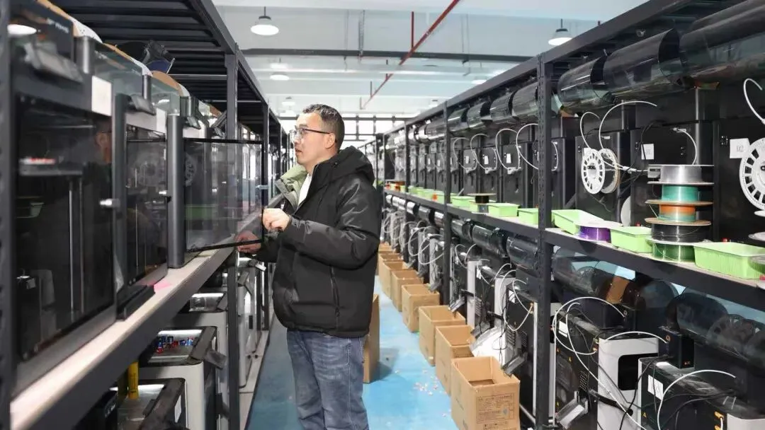 走进浙江精亮新材料科技有限公司的3D打印车间,科技感扑面而来。260多台机器正马力全开,指示灯闪烁不停,仿佛一个精密的“打印机矩阵”,正昼夜不息地将设计图纸转化为实体产品;制袋车间里,伴随着机器有节奏地运转,一个个专供出口的降解材料快递袋源源不断地“吐出”,工人们手脚麻利地进行分拣、包装,整齐码放的成品袋等待发往欧洲;3D线材生产车间里,五彩斑斓的线材如丝缎般被卷绕在车架上,等待着成为创意打印的“墨水”。