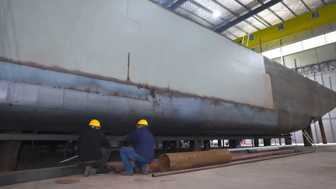 “今天是复工第一天,大家干劲都很足。第一艘纯电船舶已经组装了一半,预计四五月份就能下水。”公司采购行政负责人娄小卫介绍,随着绿色能源的推广,企业研发的纯电船舶备受市场青睐,目前订单已接到75艘,工期非常紧张。“等过了正月十五,员工将全部到岗,到时我们得加班加点赶进度了。”