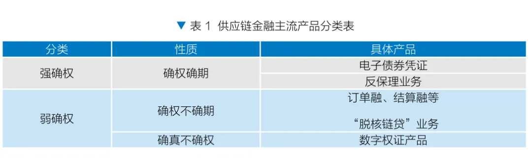 (1)基于供应商授信。强确权产品基于的仍是核心企业授信,而弱确权产品在授信主体上实现了“脱核”,金融机构对供应商进行授信,一般不占用核心企业的授信额度。